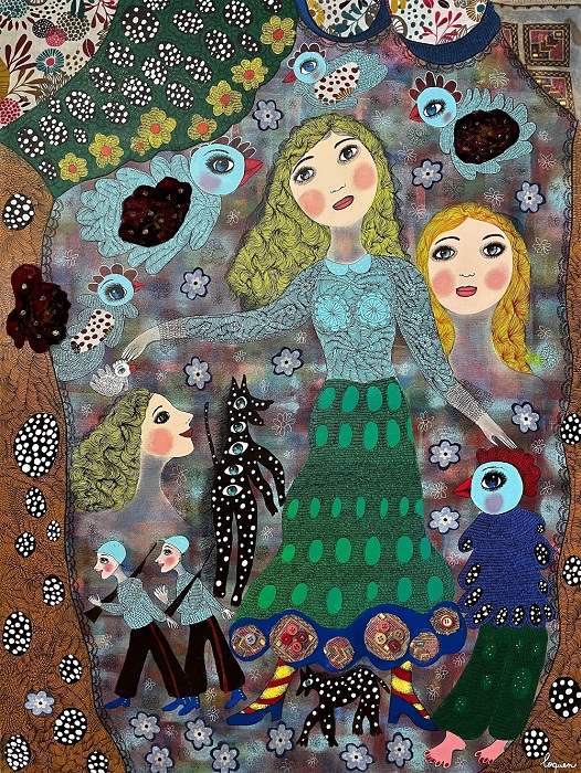 CLAUDINE LOQUEN : LE BONHEUR DE LA SENSUALITE NAIVE Normande de naissance, l'artiste s'éprend de la peinture de ses maîtres immortels : Modigliani, Frida Kahlo, Marie Laurencin, et bien sûr Dufy, son illustre compatriote. C'est Manet et son portrait au balcon de Berthe Morisot qui par-dessus tout la touche durant ces années de formation, et qui la guidera au travers de ses recherches picturales, de ses envies de créatrice. C'est sans doute de là que lui vient son goût des figures féminines et de leur mise en scène. Très inventive, Claudine Loquen produit des portraits inattendus de femmes ayant marqué l'Histoire, avec une forte aptitude à susciter l'étonnement chez le spectateur par des éléments de décor et de mise en scène audacieux. Elle sait aussi donner à la figure féminine toute sa grandeur au travers du genre allégorique, personnifiant avec innovation et fraîcheur de vieux symboles de la vie et de l'inspiration artistique. Elle parvient également avec le même souffle à donner un élan nouveau à certains lieux forts de l'imaginaire de l'artiste, des événements de la vie d'une femme … Partout on trouve un fin souci du détail et de l'agencement de la multitude des éléments qu'elle nous propose, toujours avec un sens de l'animation et du mouvement des formes, de leur explosivité naïve qui repose tout autant sur une intense définition des couleurs que sur la rencontre amoureuse entre tant d'êtres et d'objets qui, ensemble sur la toile, s'offrent mutuellement leur symbole, leur sens et leur sensualité. Outre à la galerie Rollin à Rouen, où elles sont invitées permanentes, les œuvres de Claudine Loquen sont visibles au Sénat, qui lui consacre une importante exposition individuelle, sa trentième en moins de dix ans. Thibaud Josset (Univers des Arts)